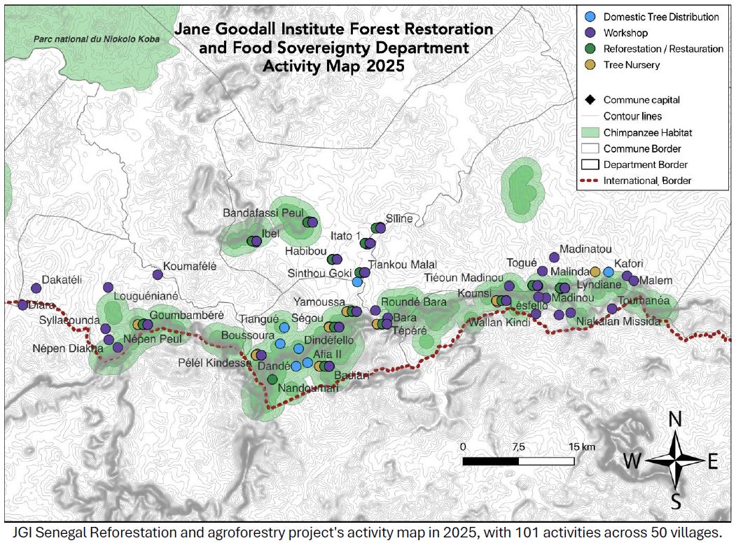 Im Jahr 2025 konnte das Team des Jane Goodall Instituts Senegal gemeinsam mit der lokalen Bevölkerung und mit Unterstützung aus Österreich beeindruckende Erfolge im Bereich der Wiederaufforstung und Agroforstwirtschaft erzielen.