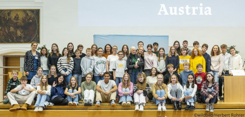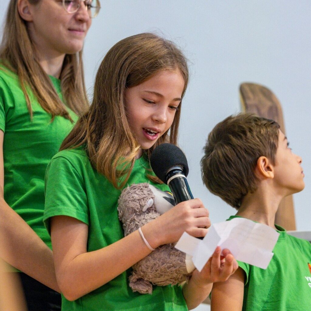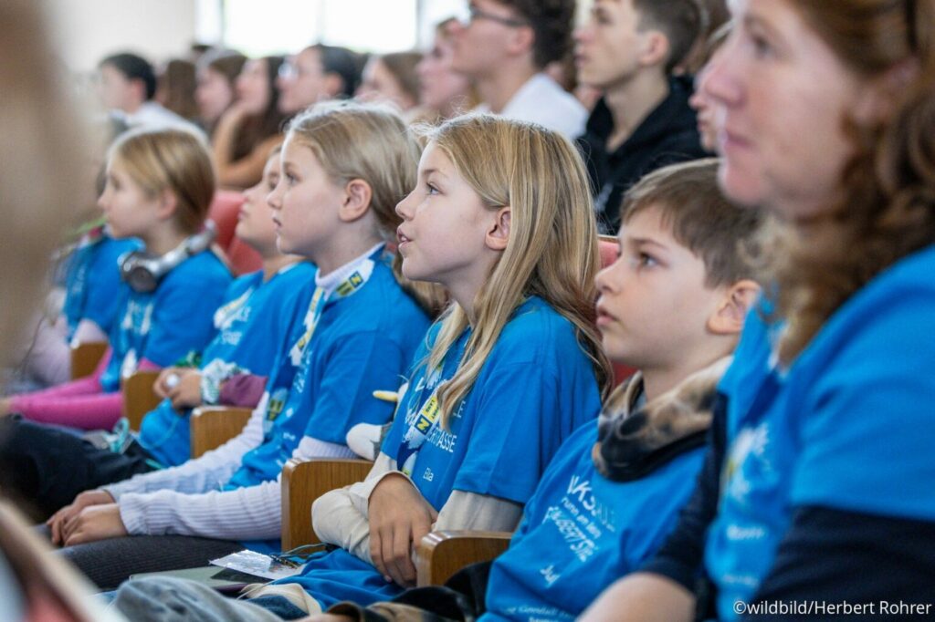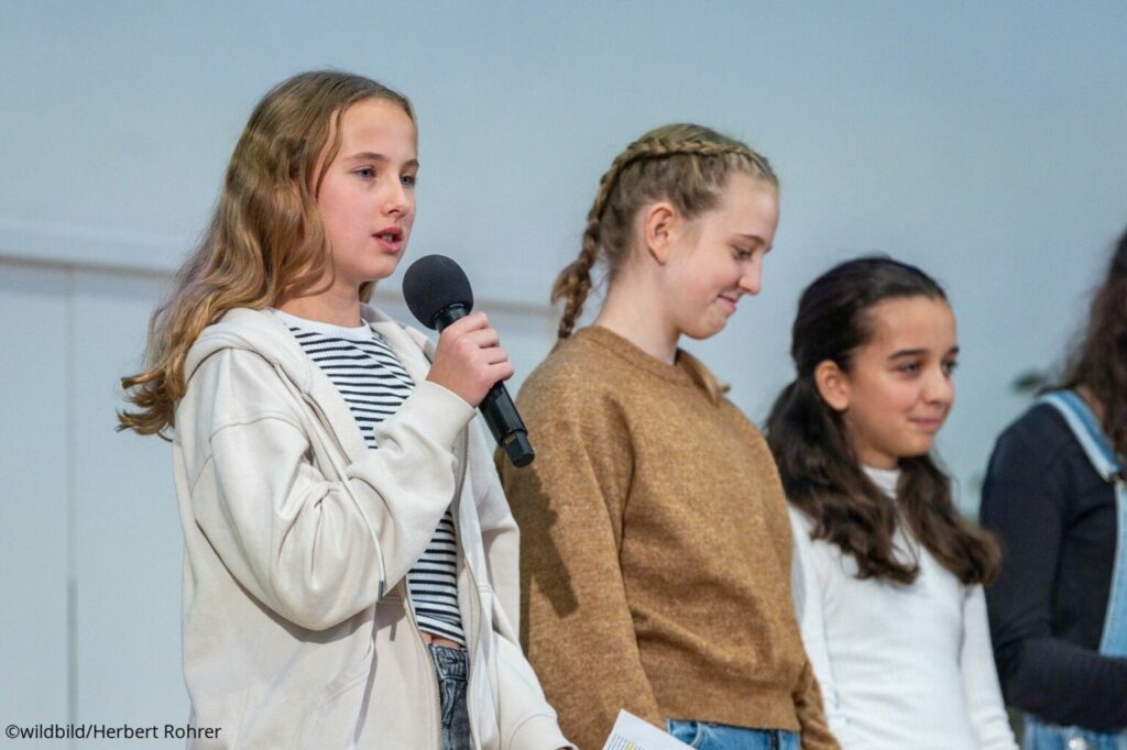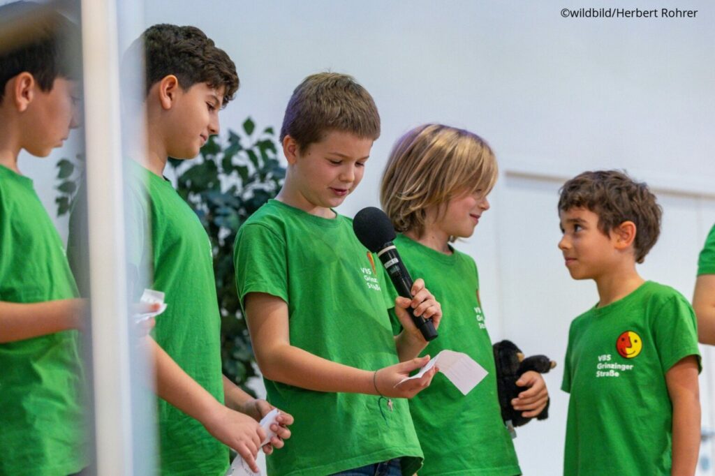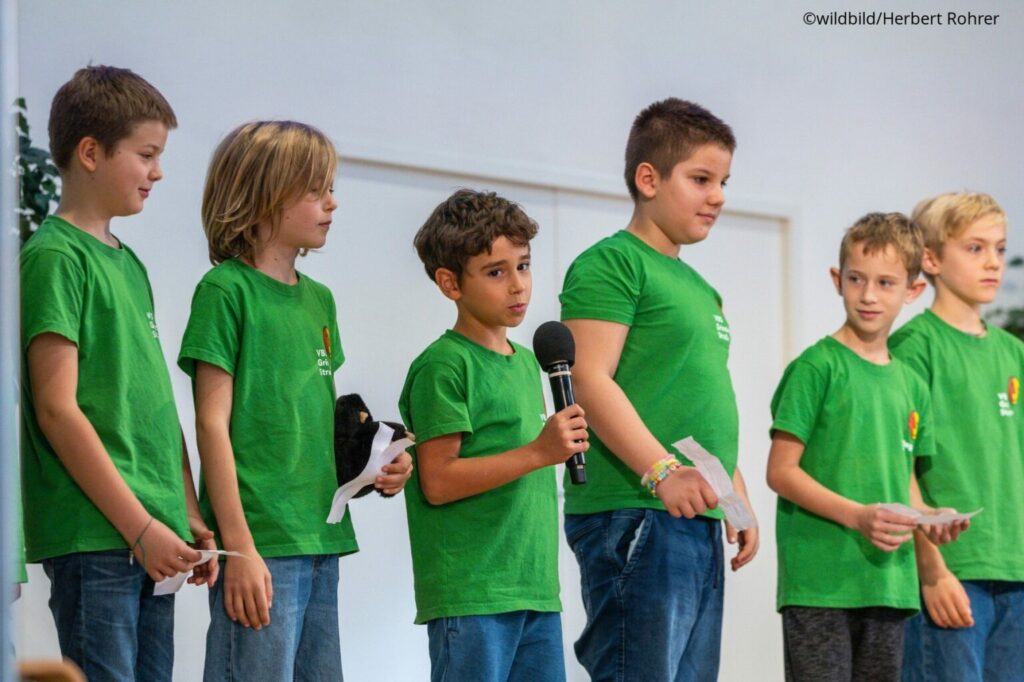 Nach der herzlichen Begrüßung von Hausherr Universitätsrektor Bernhard Fügenschuh, der von einem generationsübergreifenden Moment sprach, erhielten einige Roots & Shoots Gruppen die Gelegenheit auf der Bühne ihre Projekte vorzustellen: