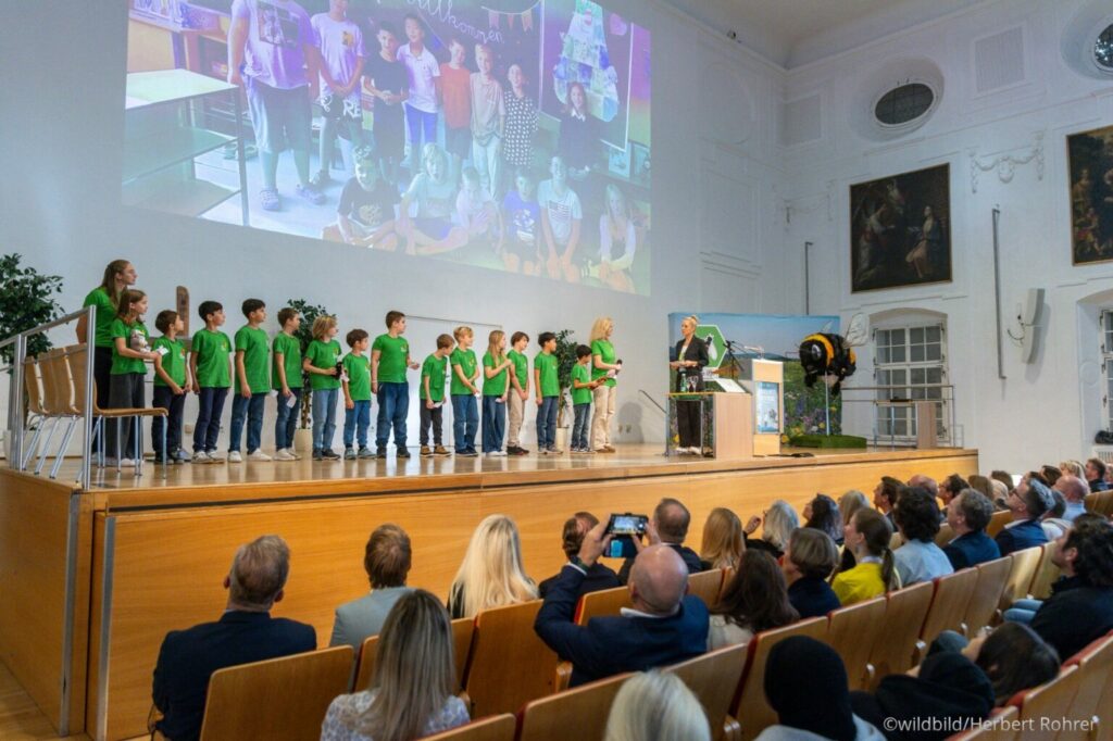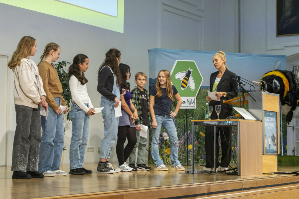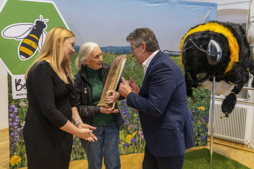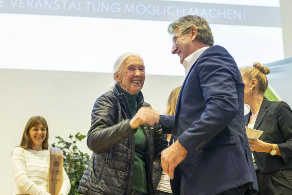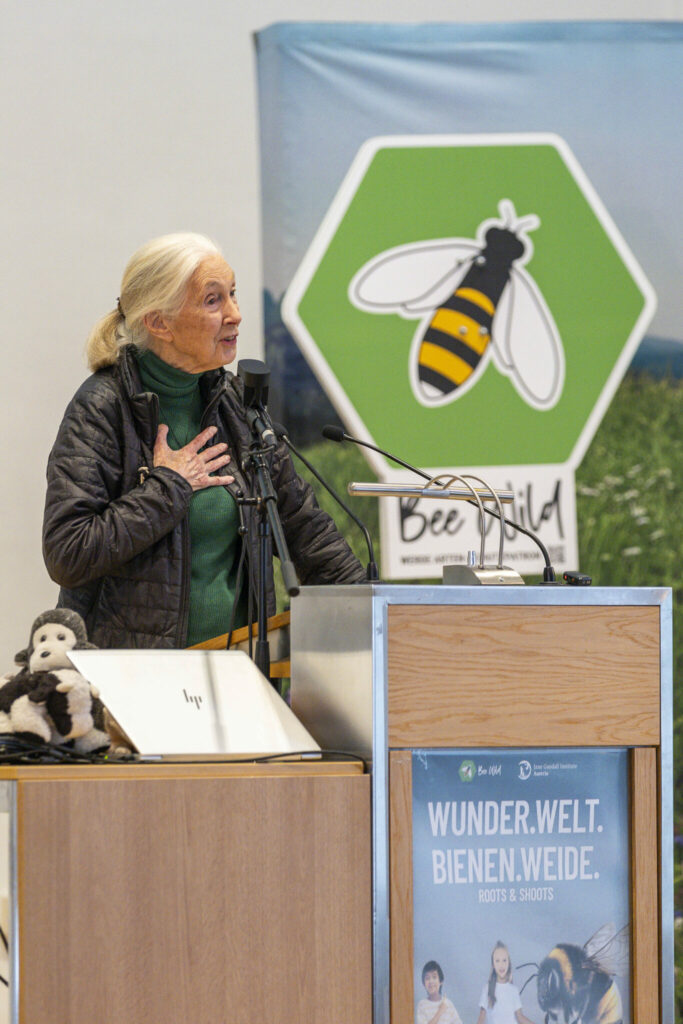 Ein weiterer Höhepunkt des Vormittags war die Verleihung des BeeWild-Awards an Jane Goodall durch Manfred Hohensinner und Katrin Hohensinner Häupl. BeeWild vergibt diesen Award jedes Jahr an besondere Persönlichkeiten, die sich für den Erhalt der Artenvielfalt und den sorgsamen Umgang mit der Umwelt einsetzen.