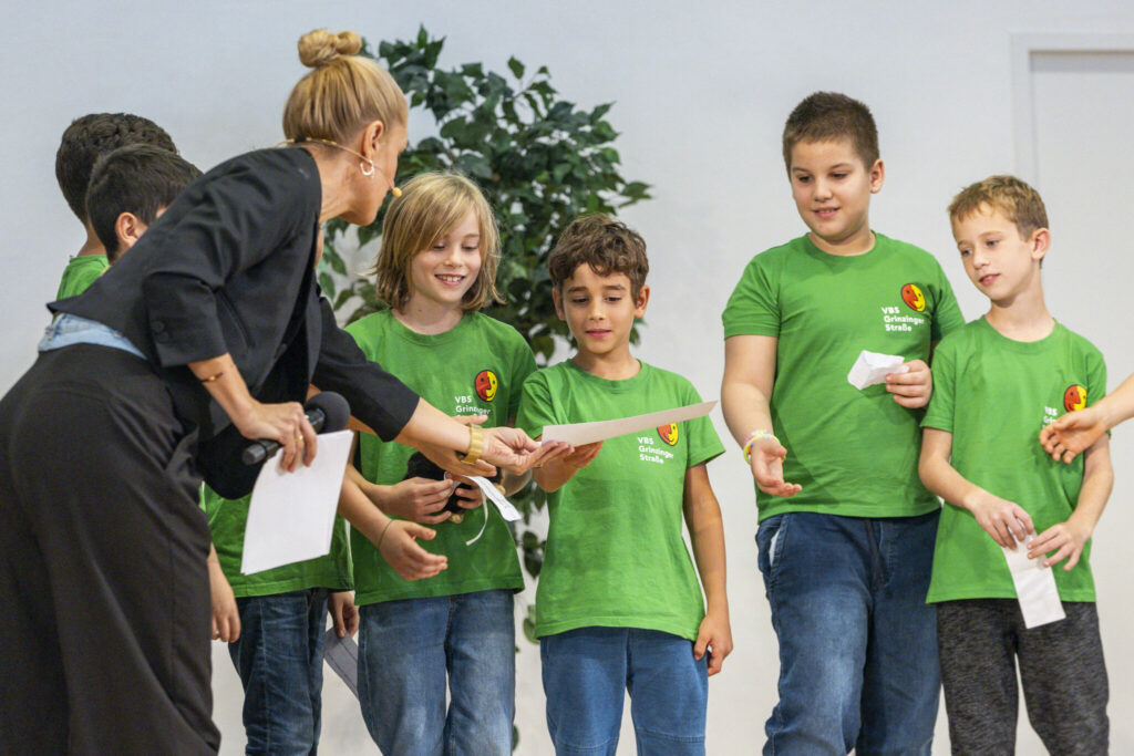 Moderatorin Lilian Klebow, die auch Ehrenbotschafterin des JGI Austria und großer Jane Goodall-Fan ist, erzählte von ihrer ersten Begegnung mit Jane Goodall, ihrer Reise zu den Projekten nach Afrika und überreichte den Gruppen „Hope in Action“-Urkunden.