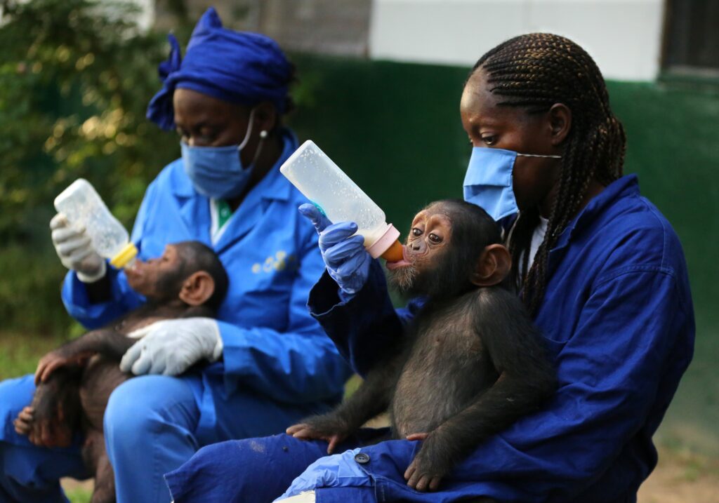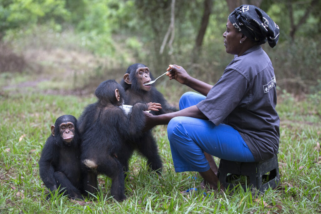 Täglich werden rund 250 Menschenaffen in den Schutzstationen Tchimpounga, Chimp Eden und Ngamba Island versorgt.