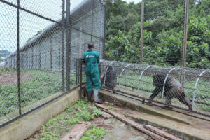 Das Team von Ngamba unternahm immer wieder Versuche ein separates Gehege zu errichten, aber alle erwiesen sich als nicht sicher genug. Erst mit der Entwicklung eines Hochsicherheitsgeheges, das sich in anderen Schutzgebieten in der Demokratischen Republik Kongo, Kamerun und Sierra Leone mit dem gleichen Problem als effektiv erwiesen hat, unternahm das Team einen neuen Versuch. Doch die Pandemie mit mehreren Lockdowns, Lieferengpässen und Einkunftseinbußen durch das Ausbleiben des Tourismus drohten das Projekt abermals zu verhindern.