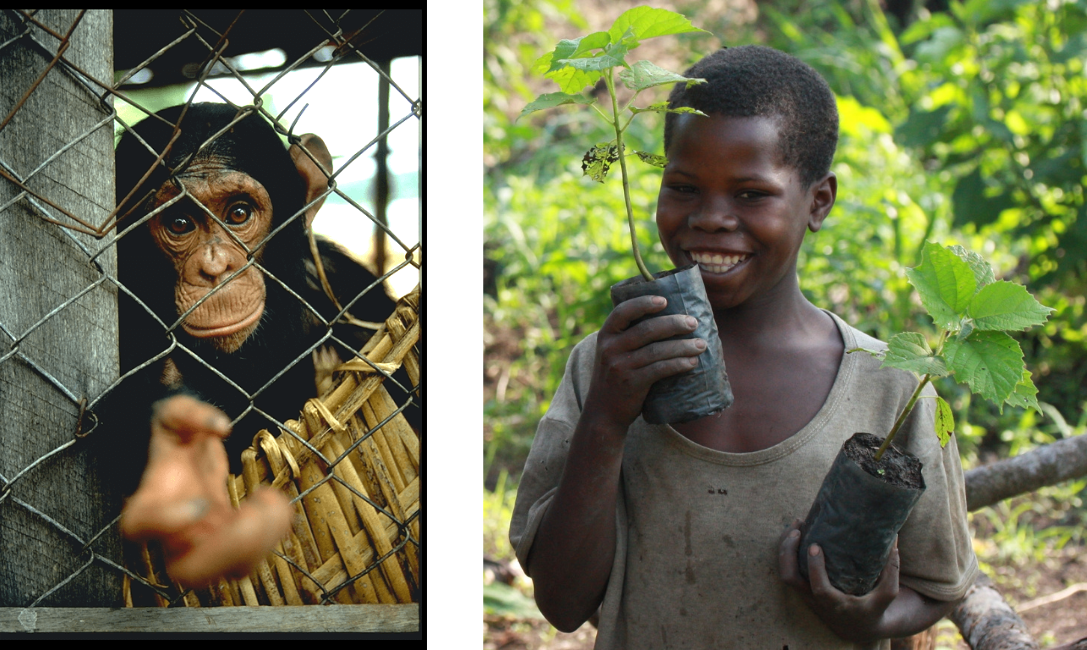 - Kein Leben ohne Regenwald: Abholzung und Brandrodung sind die größten Bedrohungen für die letzten wilden Schimpansen Afrikas. Ihre Wälder werden vernichtet. Gemeinsam mit den Menschen, die sich den Lebensraum mit Menschenaffen teilen, haben wir begonnen Bäume zu pflanzen, um die gerodeten Flächen wieder aufzuforsten: Intakte Ökosysteme für Menschen und Tiere. Das Jane Goodall Institut arbeitet in Uganda und Tansania eng mit der ansässigen Bevölkerung zusammen. Die gemeinsam entwickelten Initiativen, wie eine sorgfältig geplante Landnutzung, die Wiederaufforstung, Bildungsmöglichkeiten und umweltschonende Landwirtschaft, schaffen eine bessere Zukunft für alle – für Menschen und Tiere.