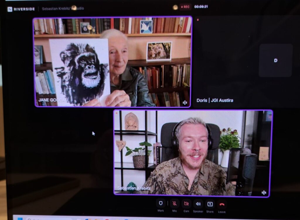 Viele Jahre später, im Jahr 2022 saß ich dann beim „Evening of Hope“-Event des Jane Goodall Institute Austria im Publikum. Jane auf der Bühne zu erleben, war für mich sehr inspirierend. Ebenso hat mich das Engagement des Instituts tief beeindruckt – so viele herzliche Menschen, die mit Leidenschaft und Tatkraft daran arbeiten, Hoffnung in konkrete Handlung zu verwandeln.