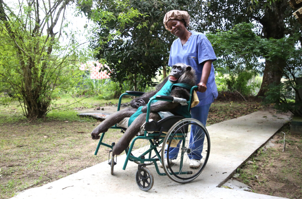 Dank ihres enormen Einsatzes haben schon viele schwer verletzte und kranke Menschenaffen überlebt. Viele haben mittlerweile ein hohes Alter erreicht. Einige haben unheilbare Erkrankungen. So wie Lemba, deren Beine aufgrund einer Kinderlähmung immer schwach blieben. Oder der alte Mbolo, der sogar mit dem Rollstuhl geführt wird und aufblüht, wenn man seinen müden Körper massiert.